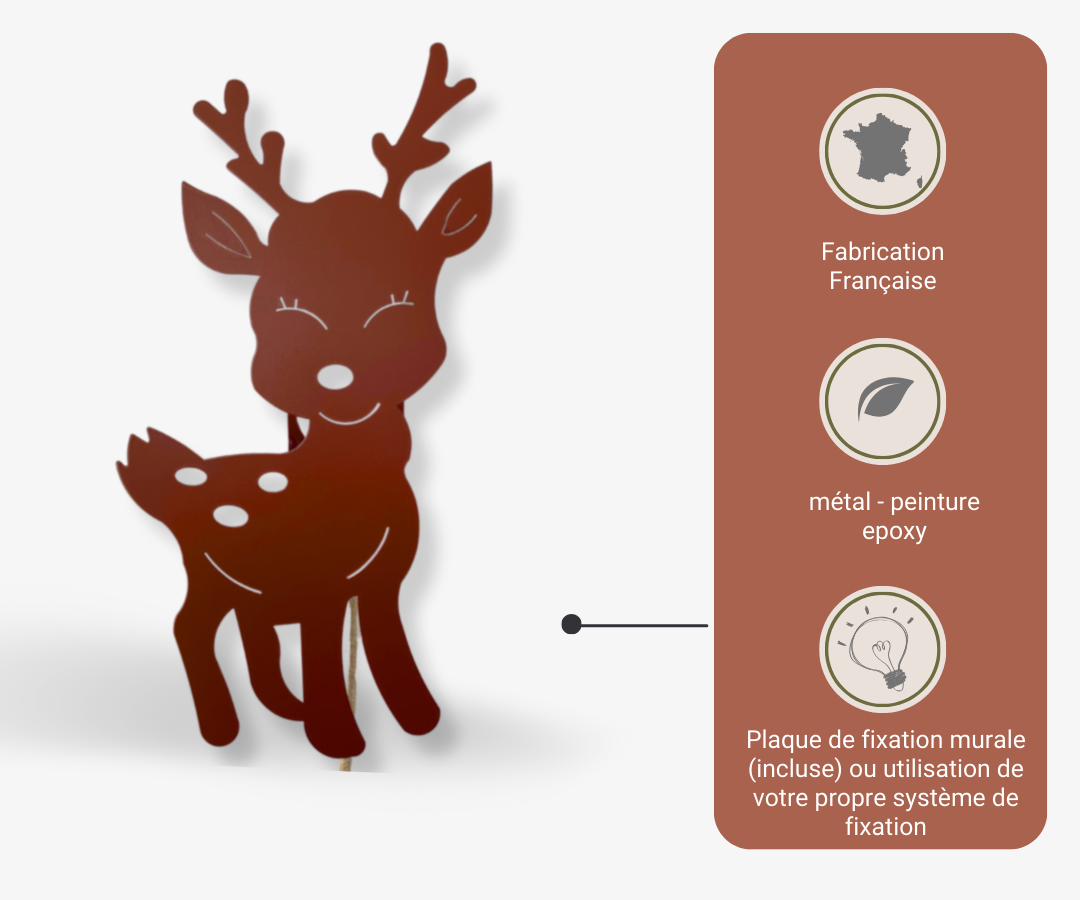Alliant un design raffiné et le savoir-faire français, cette applique murale moderne et unique ajoutera une touche d'élégance et de chaleur à l'espace de votre petit trésor. Cette biche captivera l'imagination de votre enfant, avec sa hauteur idéale de 34 cm. Ce produit permet d'ajouter une touche déco à la chambre d'un enfant, mais peut aussi servir de veilleuse.