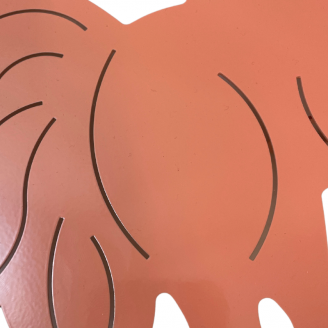 Le produit est imaginé, transformé en applique murale, nettoyé puis peint et ce, toujours dans notre atelier bourguignon. C'est un mélange de technologie et de savoir-faire français. Nous avons fait le choix de travailler avec une entreprise de proximité pour la découpe laser, située à environ 20 kms de notre atelier pour une empreinte carbone la plus faible possible et pour un travail de proximité.