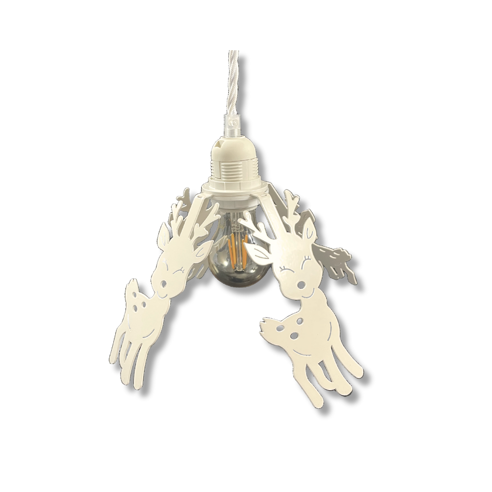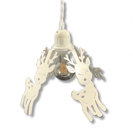 Ajoutez une touche de charme et de féérie à votre espace avec notre petite suspension baladeuse en métal couleur blanc cassé, mettant en vedette 4 formes de biches.