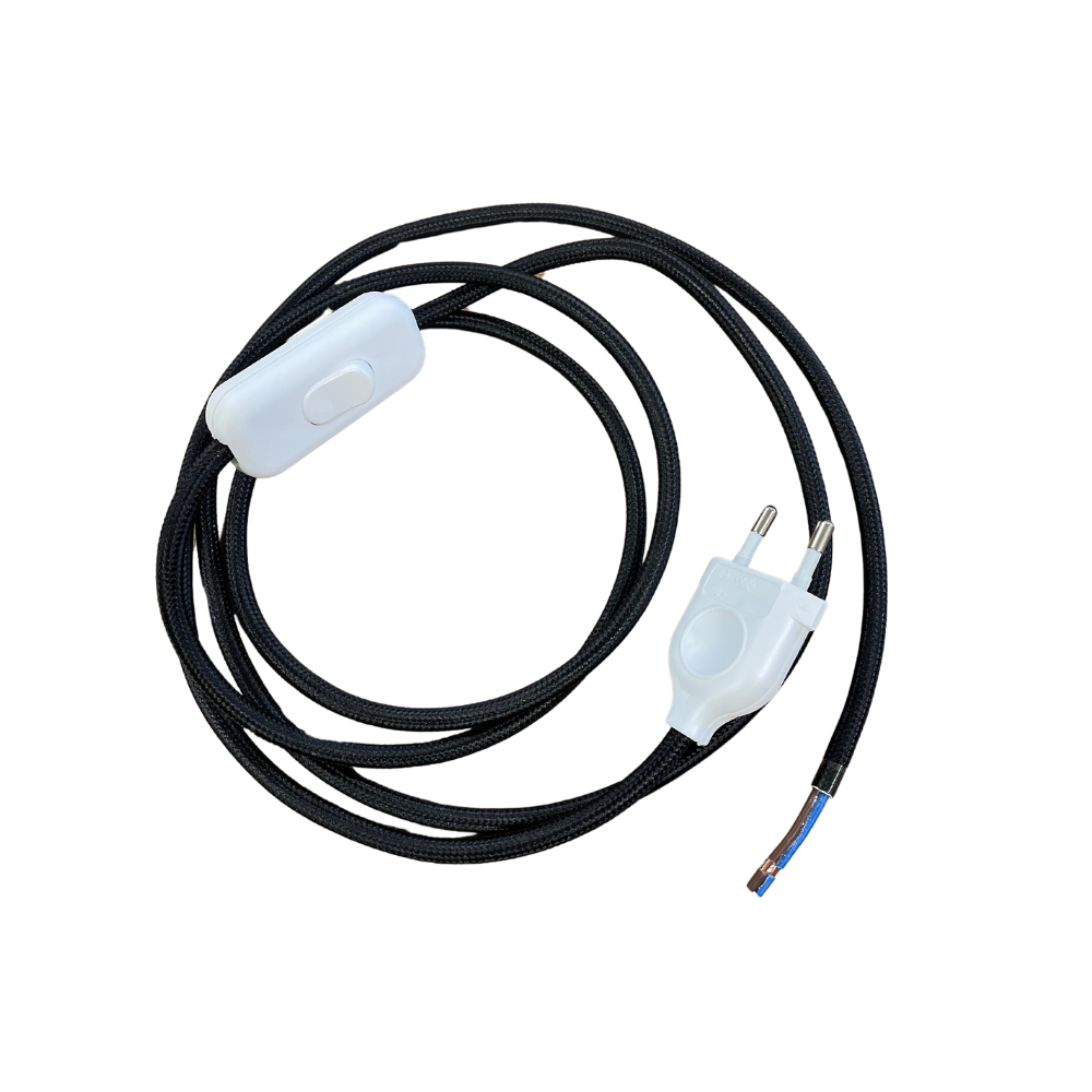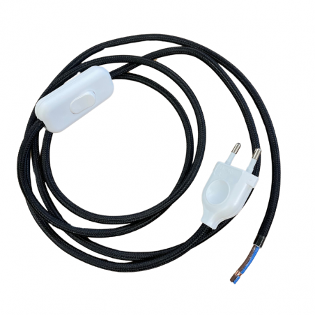 Cordon électrique en soie noir avec interrupteur.