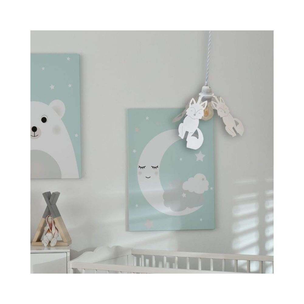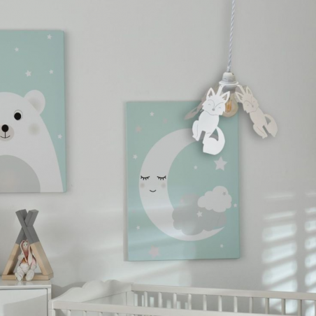 Le produit est imaginé, créer , découpé puis peint et ce, toujours dans notre atelier bourguignon. Ce luminaire est idéal pour une chambre d'enfant. Ce produit peut être utilisé en suspension ou en petite baladeuse. Ajoutez un très beau cordon de suspension ou un cordon électrique pour apporter plus de design.