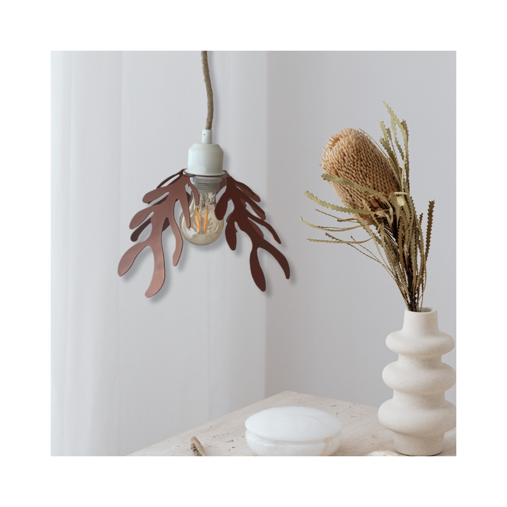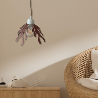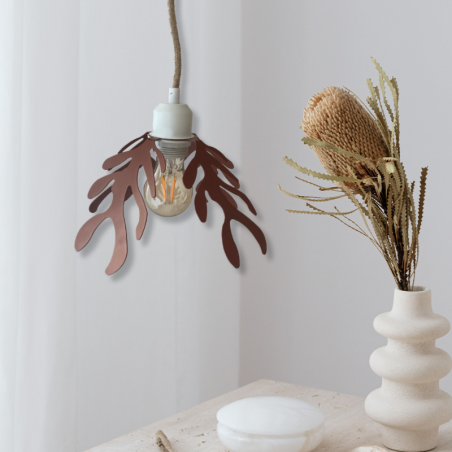 Il vous suffira juste d'insérer la douille de votre cordon de suspension dans la bague E27 de ce produit et d'y mettre l'ampoule de votre choix. L'écart des feuilles d'algues est modulable : vous pouvez agrandir ou rétrécir l'écart.