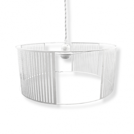 La teinte blanche apporte une luminosité délicate à votre espace, créant une atmosphère captivante et apaisante. Polyvalent et stylé, cet abat-jour cylindrique peut être suspendu avec élégance pour un éclairage d'ambiance spectaculaire ou utilisé comme abat-jour pour pied de lampe, s'adaptant parfaitement à votre style.