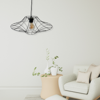 Le produit est imaginé, créer et assembler à la main, puis peint en noir et ce, toujours dans notre atelier bourguignon. Ce luminaire au design épuré, courbé et industriel est à suspendre, idéal pour une pièce avec une belle hauteur sous plafond. La canopus 40 cm est la suspension idéale pour illuminer votre intérieur. Vous pouvez ajouter une très belle ampoule à filament à ce luminaire.